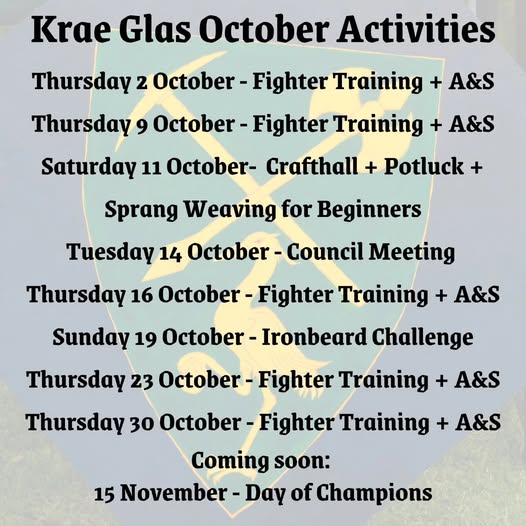 This wonderful event is shared between both Krae Glas & Stormhold & is held in honour of the late Lord Roland Ironbeard who was a renouned archer in both Baronies. As well as competing for the championship title (currently held by The Honourable Lord Gillucan ua Tomaltaig), there will be novelty shoots for archers of all skill levels, a potluck lunch & lots of fun! Please note that this is a garbed event & we ask that you wear an attempt at pre-17th century clothing. If you need to borrow garb or festing gear, please reach out to our Event Steward or Chatelaine (there will be bows & arrows available to borrow at the event).
